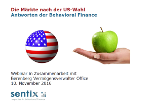 Mit der Webkonferenz am 10.11.16 um 10.30 Uhr erleben Sie aus erster Hand, was aus Sicht der Behavioral Finance-Analysen für die Märkte nach der US-Wahl zu erwarten ist. Wo sind die Fallstricke und wie lassen sich die Erkenntnisse im Asset Management umsetzen?